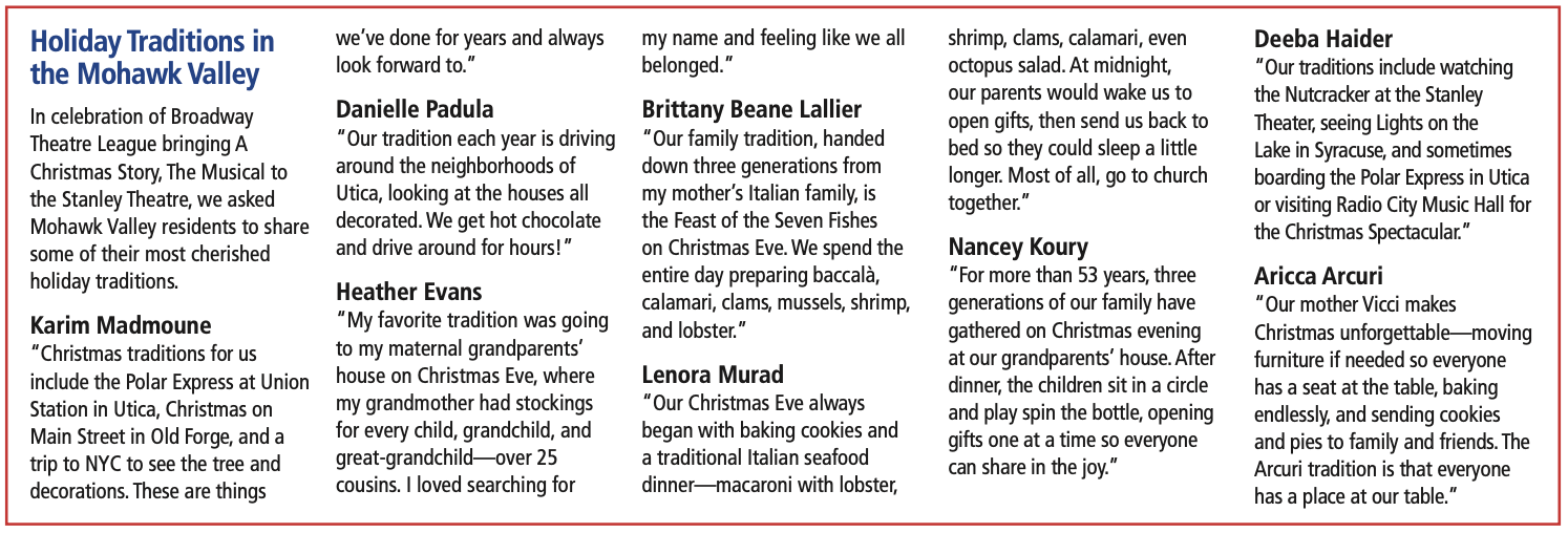 When the curtain rises at the Stanley Theatre, it won’t just be a show—it will be part of our holiday traditions, weaving itself into the memories we carry forward. That’s what Broadway Utica has always done best: given us a chance to laugh, remember, and share the magic of the season together.