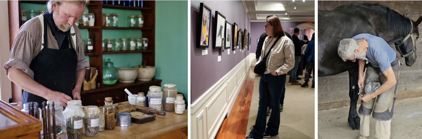 • Workshops available beginning April 1: Blacksmith Workshop, Basketmaking, Candle Making, Sheep Shearing, Broom Making, Bread Making & More!