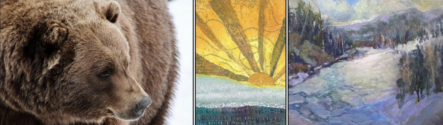 DON’T MISS IT: 2026 Winter Art Show, March 1-12, at Paul Nigra Center for Creative Arts. Pictured above, left to right: “Big Brown Bear” by John Carver, “Golden Sunset” by Gabriella Gabriel Dillmann, and “Snow Melt” by Marion Kratky”.