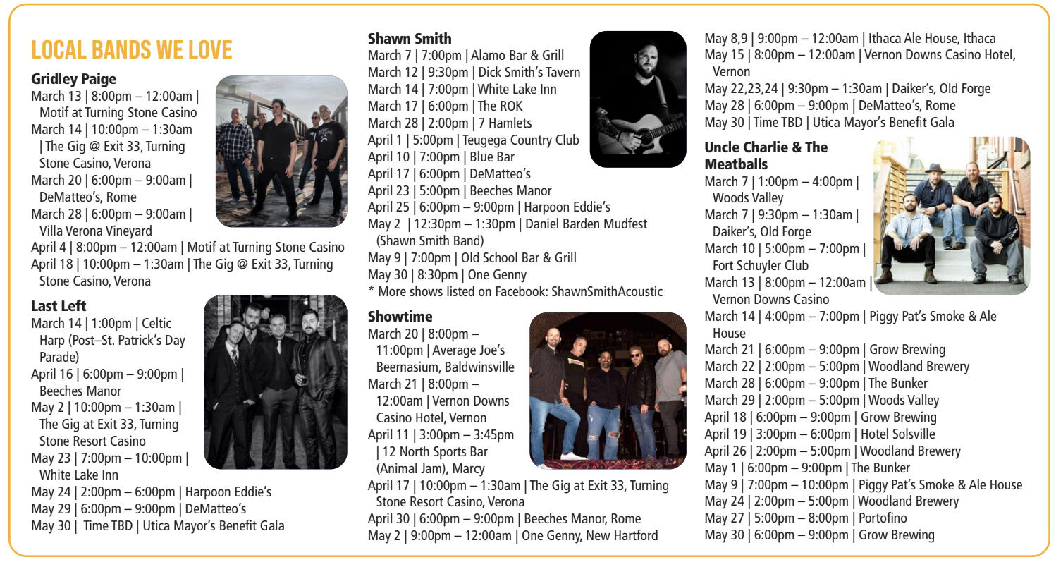 We have also included a curated selection of standout performances just beyond the Mohawk Valley, the kind of concerts worth the short drive for a memorable night out.