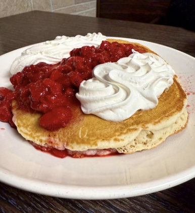 We tried them with whipped cream and strawberries, and the flavor was sweet but not overwhelming. The strawberries tasted fresh, not heavy like a thick preserve. Just bright, clean sweetness that paired beautifully with the soft buttermilk flavor of the pancake itself. It felt simple, but in the best possible way.